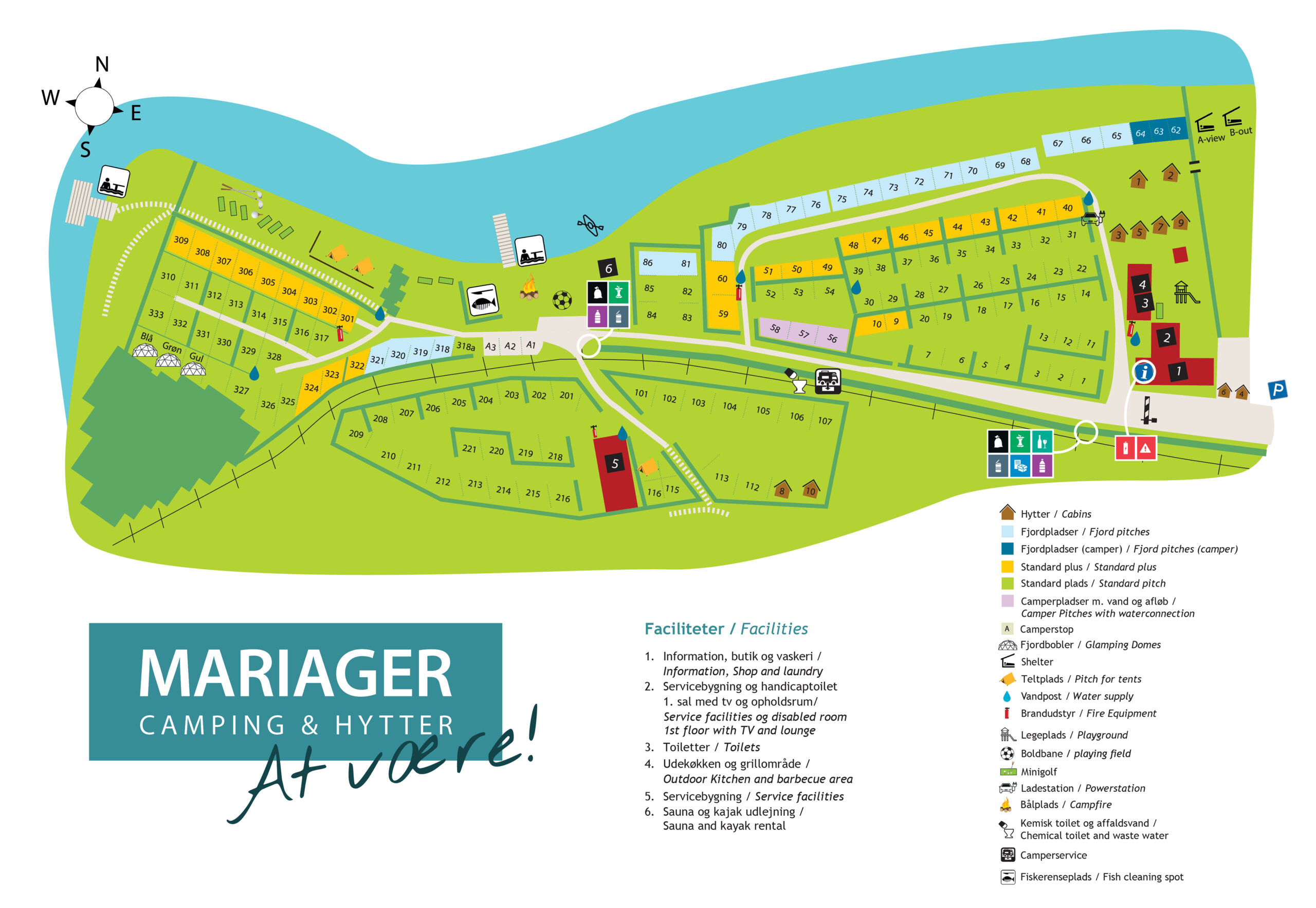 Hytterne er placeret blot 30 meter fra servicebygning og tv- og opholdsstue. Værelseshytterne er velegnet til enkelte overnatninger eller hvis du er sammen med andre og blot behøver et sted at sove.